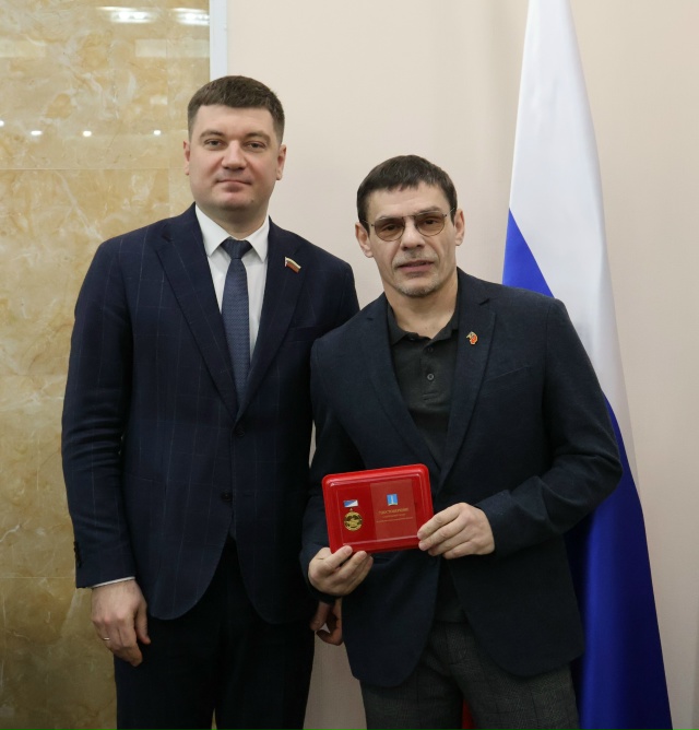 В Ульяновске отметили заслуги активистов, помогающих фронту. На заседании Городской Думы нагрудные знаки «За содействие СВО» были вручены Юрию Беляеву и Игорю Журавлёву.