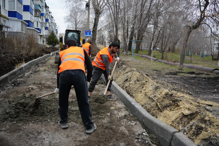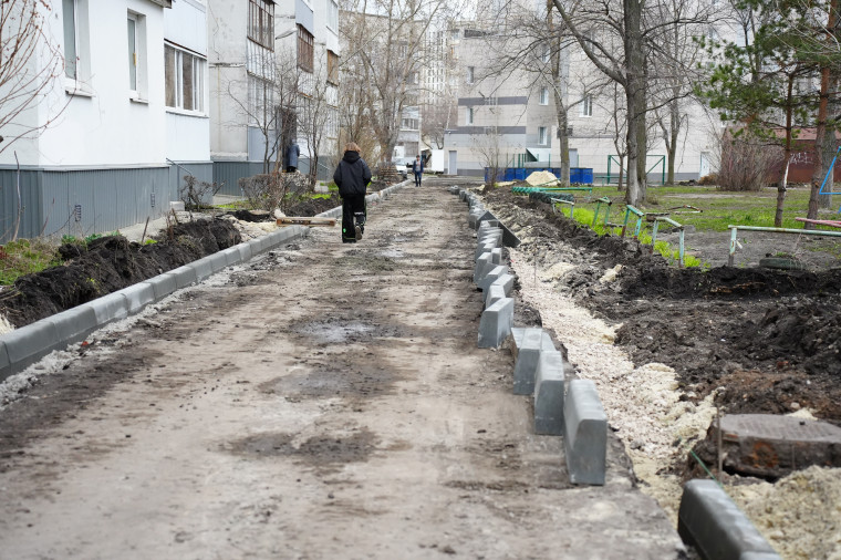 В Железнодорожном районе на улице Пушкинской, 4 работы стартовали 1 апреля. Прораб Валерий Гаврилов рассказал, что здесь уже демонтировали старый бордюр и устанавливают новый, ремонтируют подходы к подъездам, внутридомовой проезд и бельевую площадку. Всё это с устройством свежего асфальтобетонного покрытия.
