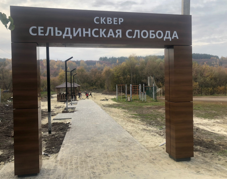 «Сельдинская слобода» обновляет свой сквер: поставили арки, фонари, урны, выложили дорожки брусчаткой и убрали старые деревья.