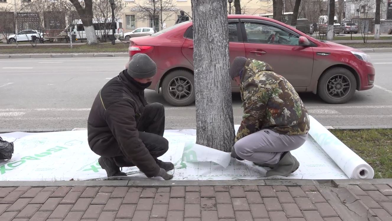 Работы ведутся поэтапно: 26 ноября укрывной материал размещают на расширенных приствольных лунках по четной стороне улицы Гончарова — от улицы Кузнецова до Центрального банка. После завершения работ на этом участке специалисты приступят к защите деревьев на нечетной стороне улицы.