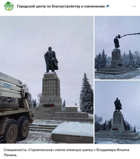 Специалисты муниципального предприятия «Городского центра по благоустройству и озеленению» провели работы по очистке от снега памятника Владимиру Ильичу Ленину на центральной Соборной площади Ульяновска.
