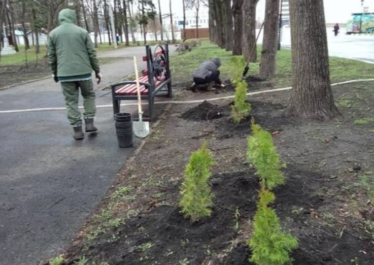 Как доложил директор учреждения Геннадий Моргунов, в настоящее время специалисты работают в Николаевском сквере, который расположен между эспланадой и Краеведческим музеем в историческом центре. Здесь уже высажены 18 туй и четыре ивы. Сегодня тихий уголок украсят ещё 185 кустарников: сирень, спирея серая и японская, кизильник и пузыреплодник. Также зелёные насаждения появятся у Доски Почёта на эспланаде — туи, можжевельник, барбарис и пузыреплодник.