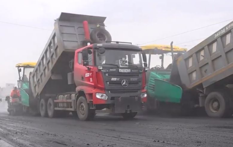 Для этого используется 850 тонн асфальтобетонной смеси. Материал укладывается одновременно по всей ширине проезжей части с учётом ливневых решёток и смотровых колодцев.