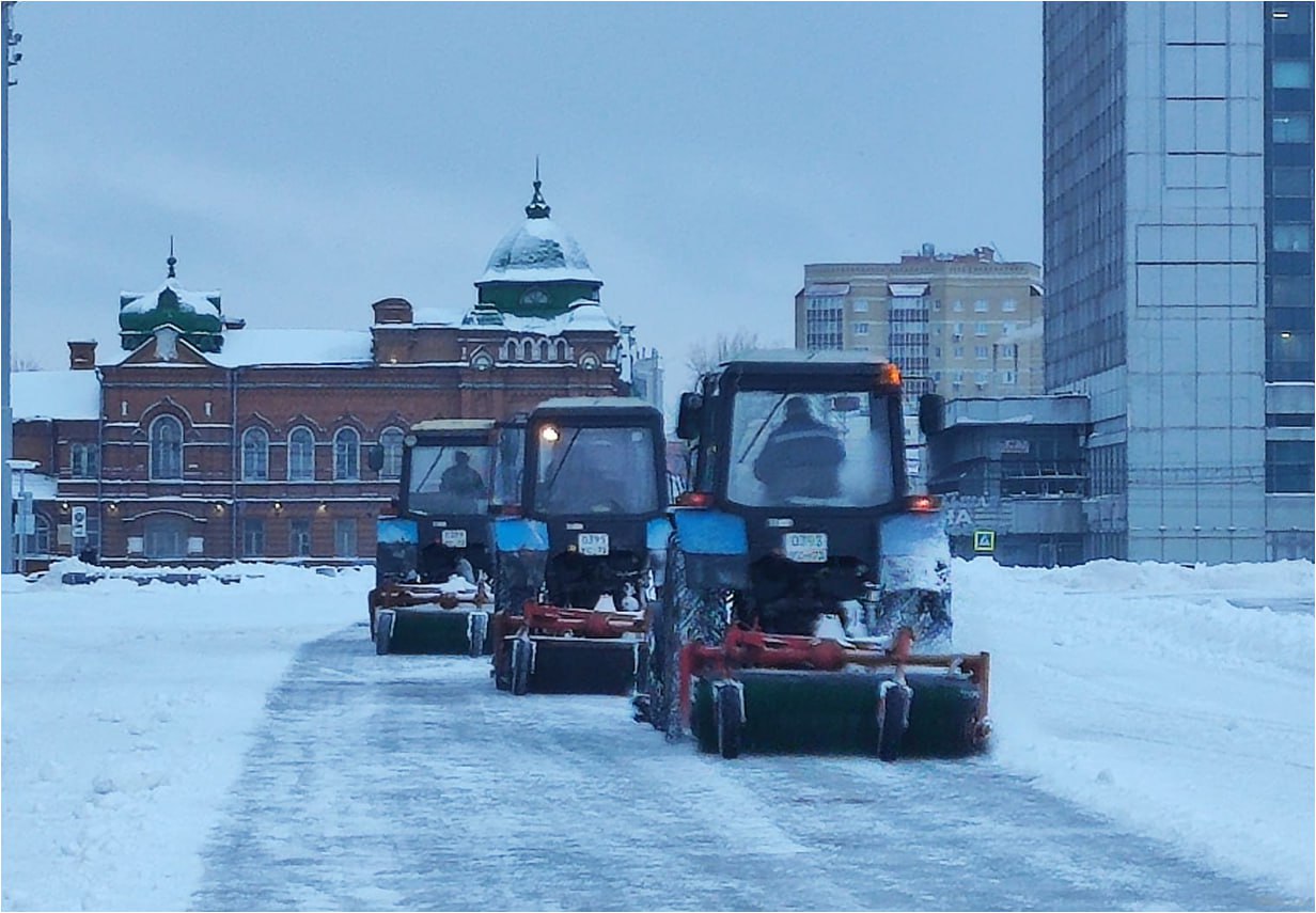 В зону ответственности МБУ «Городской центр по благоустройству и озеленению» входит содержание 133 общественных территорий, включая скверы, главный городской каток и дворовые ледовые площадки. Для обеспечения бесперебойной работы в зимний период учреждение подготовило специализированную технику: 14 тракторов с плужно-щеточным оборудованием, 2 прицепных пескоразбрасывателя и 8 самосвалов для вывоза снега.