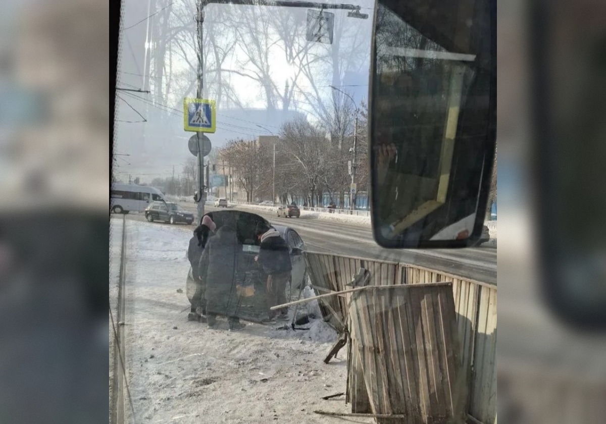 В Ульяновске произошёл опасный инцидент на остановке общественного транспорта. Днём 24 января, около 14:30, в Засвияжском районе на остановке «Полбина» легковой автомобиль врезался в металлическое ограждение посадочной площадки.