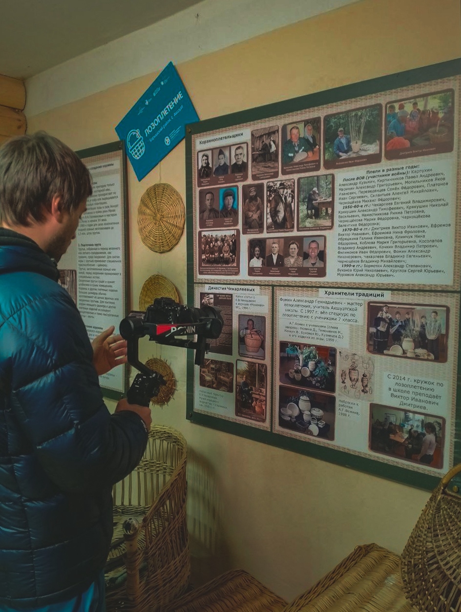 Для создания полной картины съемочная группа посетила Акшуатский краеведческий музей. Его экспозиция, включающая как исторические, так и современные работы из ивового прута, стала наглядной иллюстрацией живой и развивающейся традиции. Отдельный сюжет будет посвящен истокам промысла, который более века назад был сознательно основан помещиком Владимиром Поливановым, заложившим основу для уникального культурного явления.