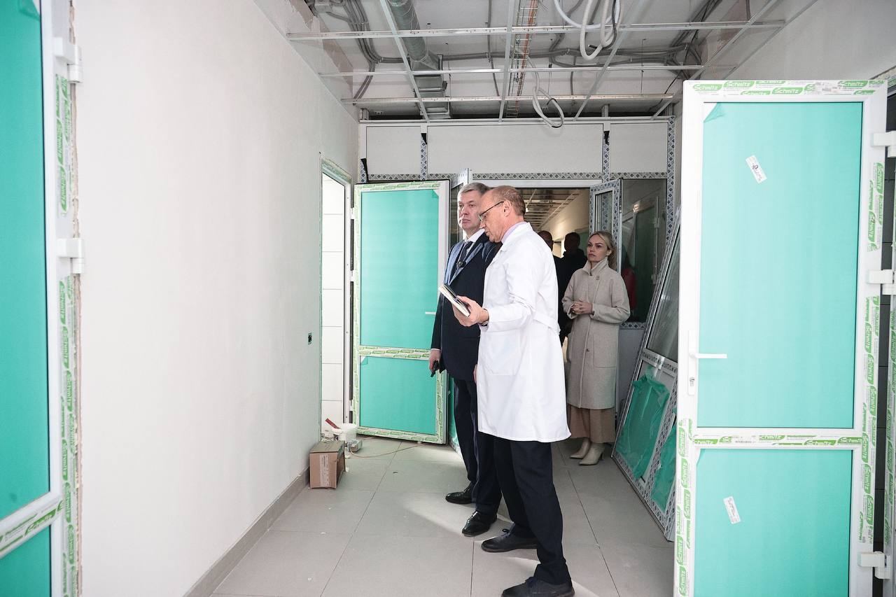 В перечень работ входит ремонт входной группы, холла и первого этажа с полной заменой коммуникаций, а также приведение «красной зоны» в соответствие с современными стандартами. Ремонт близится к завершению, и губернатор поручил подрядчикам ускорить его завершение. Этап является первым в программе модернизации учреждения, в связи с чем главе региона поручено разработать план дальнейших работ. Также в ходе визита обсуждался вопрос укомплектованности поликлиники кадрами.