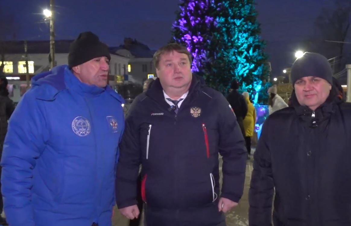 Мэр лично оценил оформление площадки у кинотеатра «Современник», где уже установлены ёлка, световые фигуры снеговиков, большой паровоз и арочные скамейки.