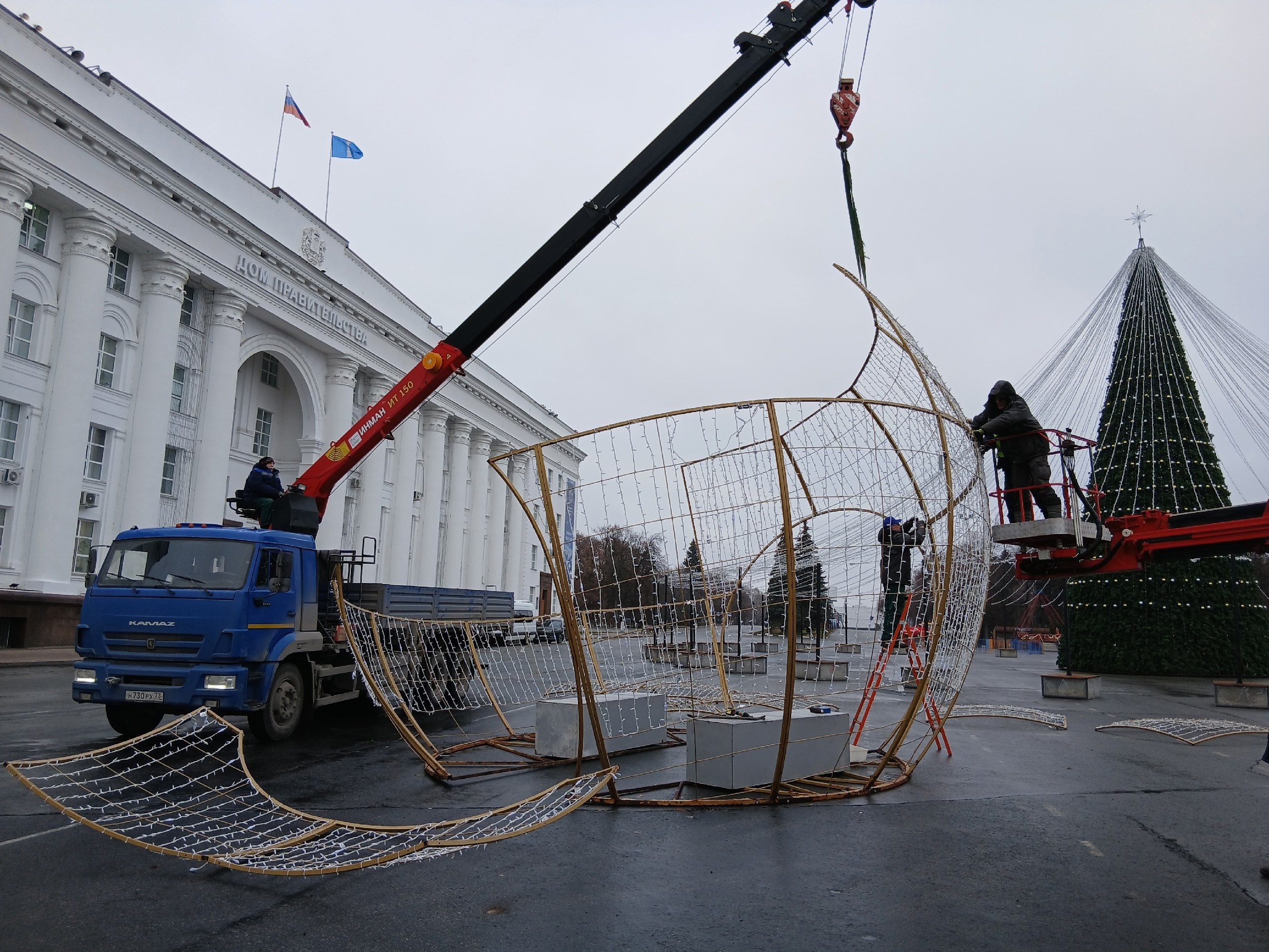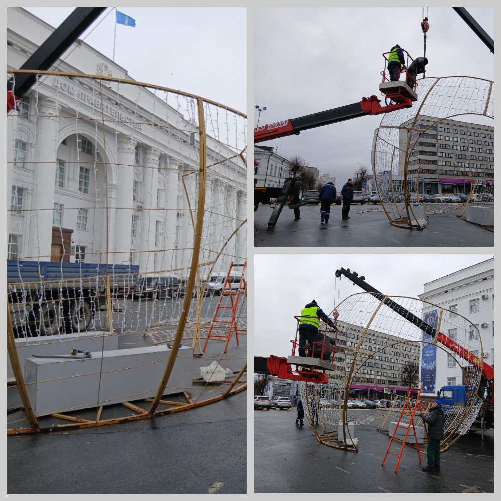 На Соборной площади Ульяновска завершается установка одного из главных новогодних арт-объектов — восьмиметровой световой инсталляции в форме гигантского шара. Работы по монтажу этой сложной конструкции специалисты планируют закончить сегодня, 2 декабря.