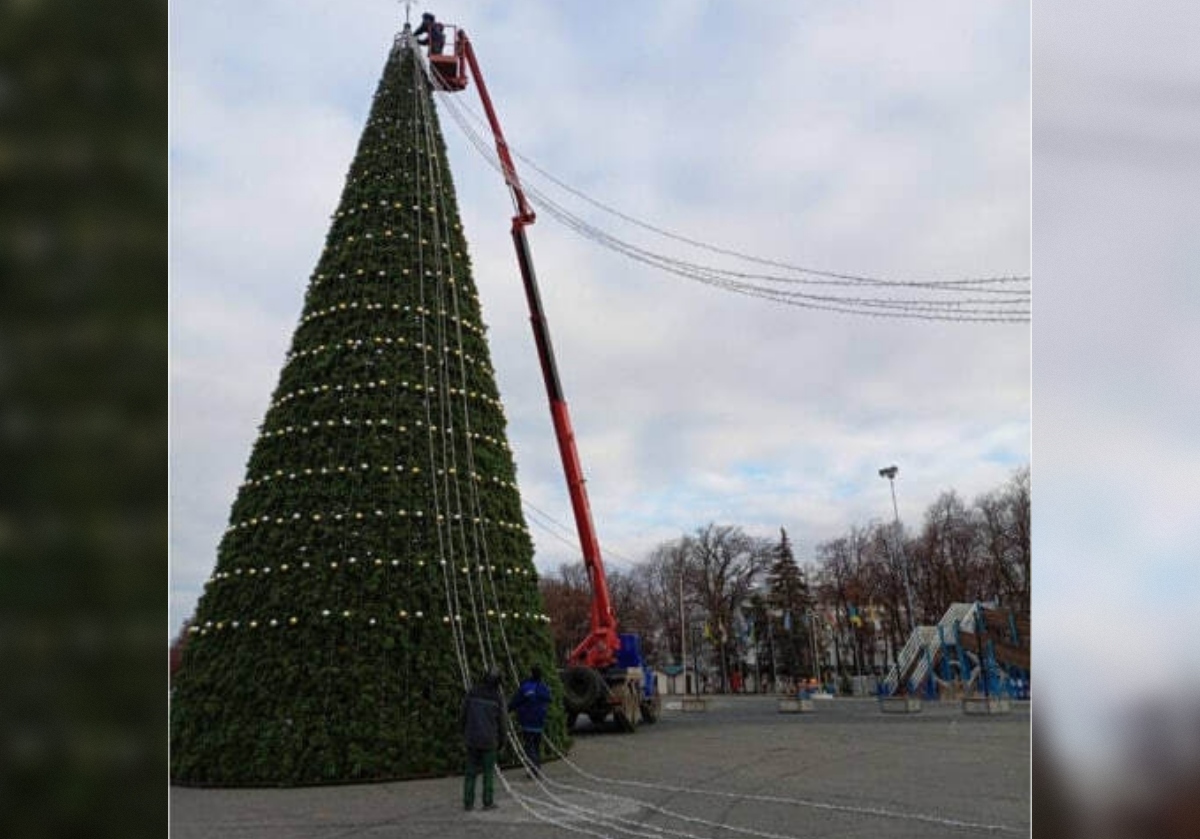 Так, с применением двух автогидроподъемников на ветвях установили 400 традиционных новогодних шаров на главную ёлку на Соборной площади, что стало важным этапом в создании праздничного облика.