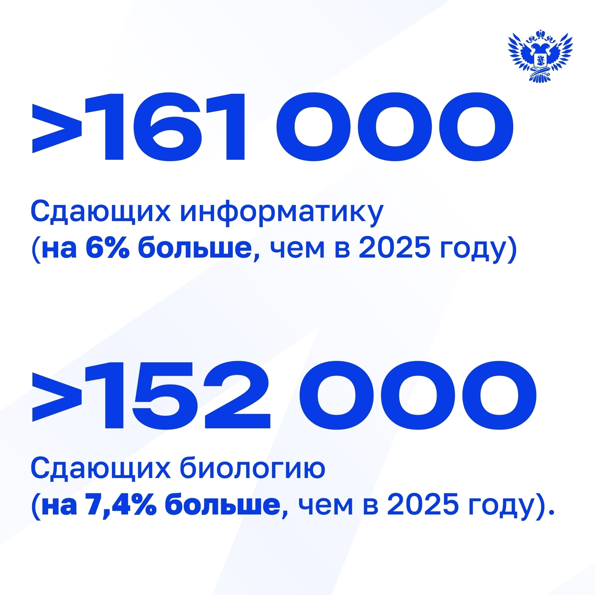 Традиционно самым массовым экзаменом по выбору стало обществознание — его выбрали 46% школьников. Однако в ведомстве отмечают растущий интерес к естественно-научным и техническим дисциплинам: