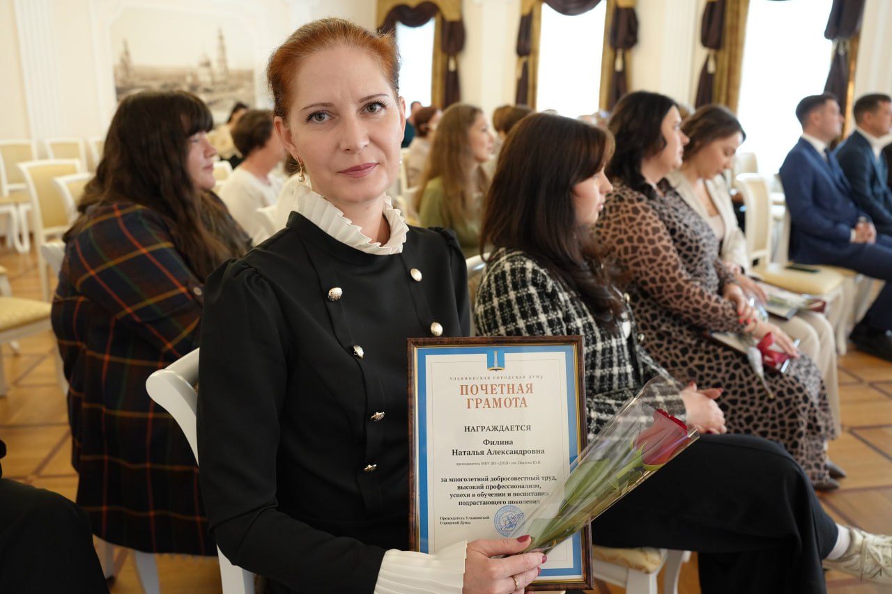 Особые слова благодарности прозвучали в адрес педагогов, которые активно участвуют в культурной жизни города, создавая яркие мероприятия для его жителей и гостей. За значительные достижения в педагогической деятельности и весомый вклад в воспитание подрастающего поколения Благодарственные письма администрации Ульяновска были вручены преподавателям Детской школы искусств №10 — Екатерине Дудниковой, Марии Потаповой и Наталье Волковой.