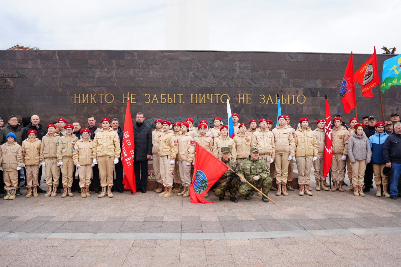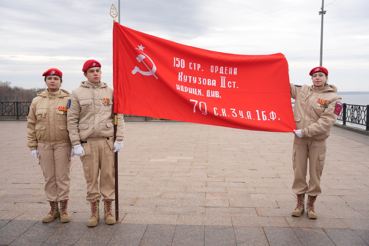 Почётную миссию знамённой группы от Ульяновской области выполняли юнармейцы из военно-патриотического клуба «Пламя» средней школы № 47.