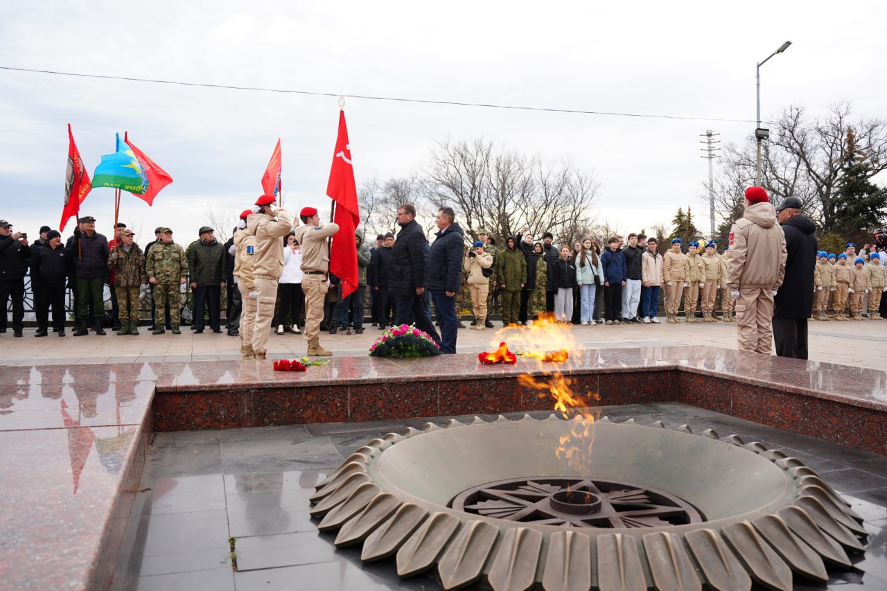 Эта церемония является частью масштабной патриотической акции «Марш Знамени Победы», которая проходит в Год защитника Отечества и в преддверии 80-летия Великой Победы. Акция стартовала в августе на Сахалине и продлится до конца года, в рамках которой точная копия легендарного знамени, водруженного над Рейхстагом в 1945 году, путешествует по регионам России.