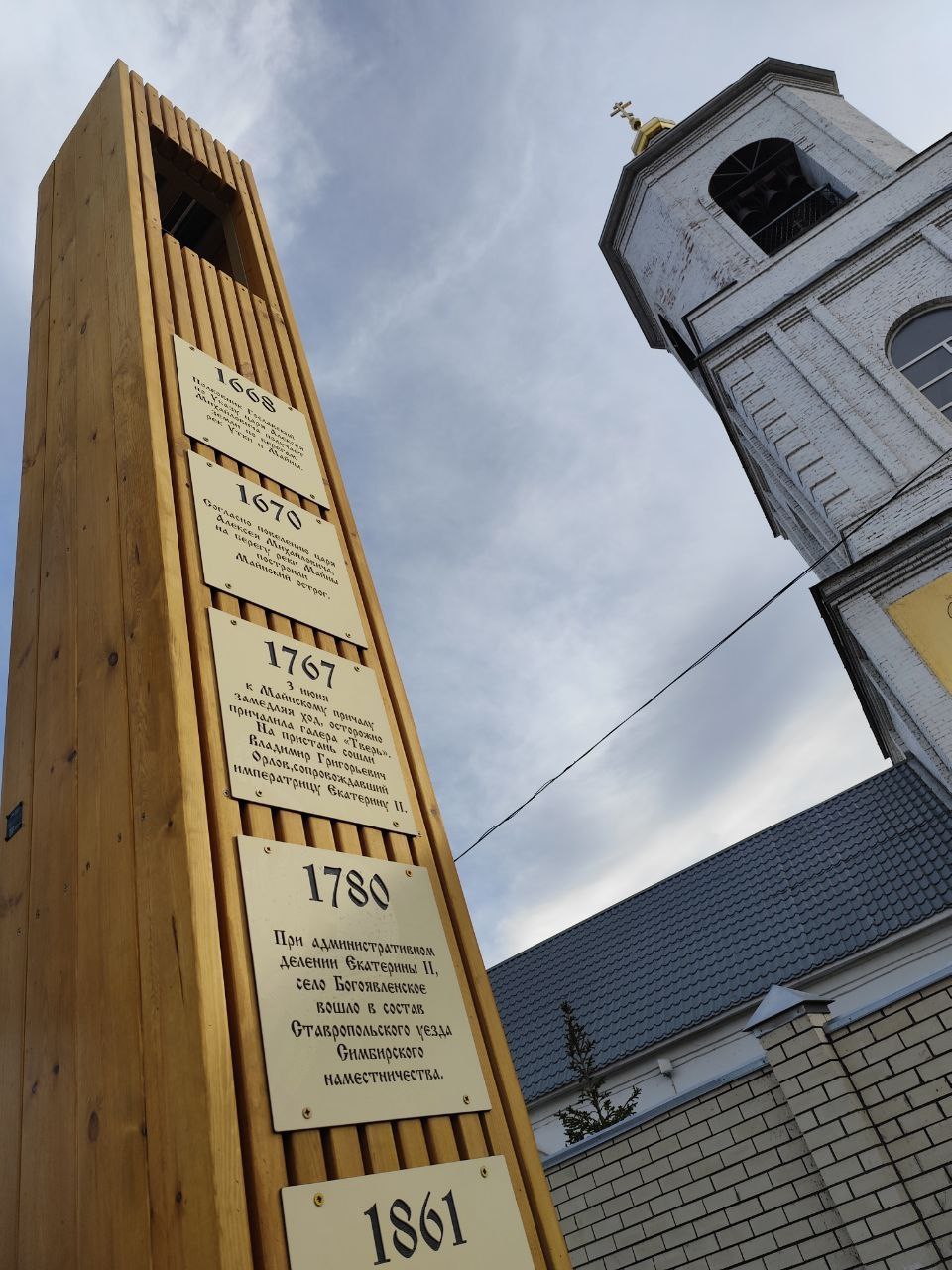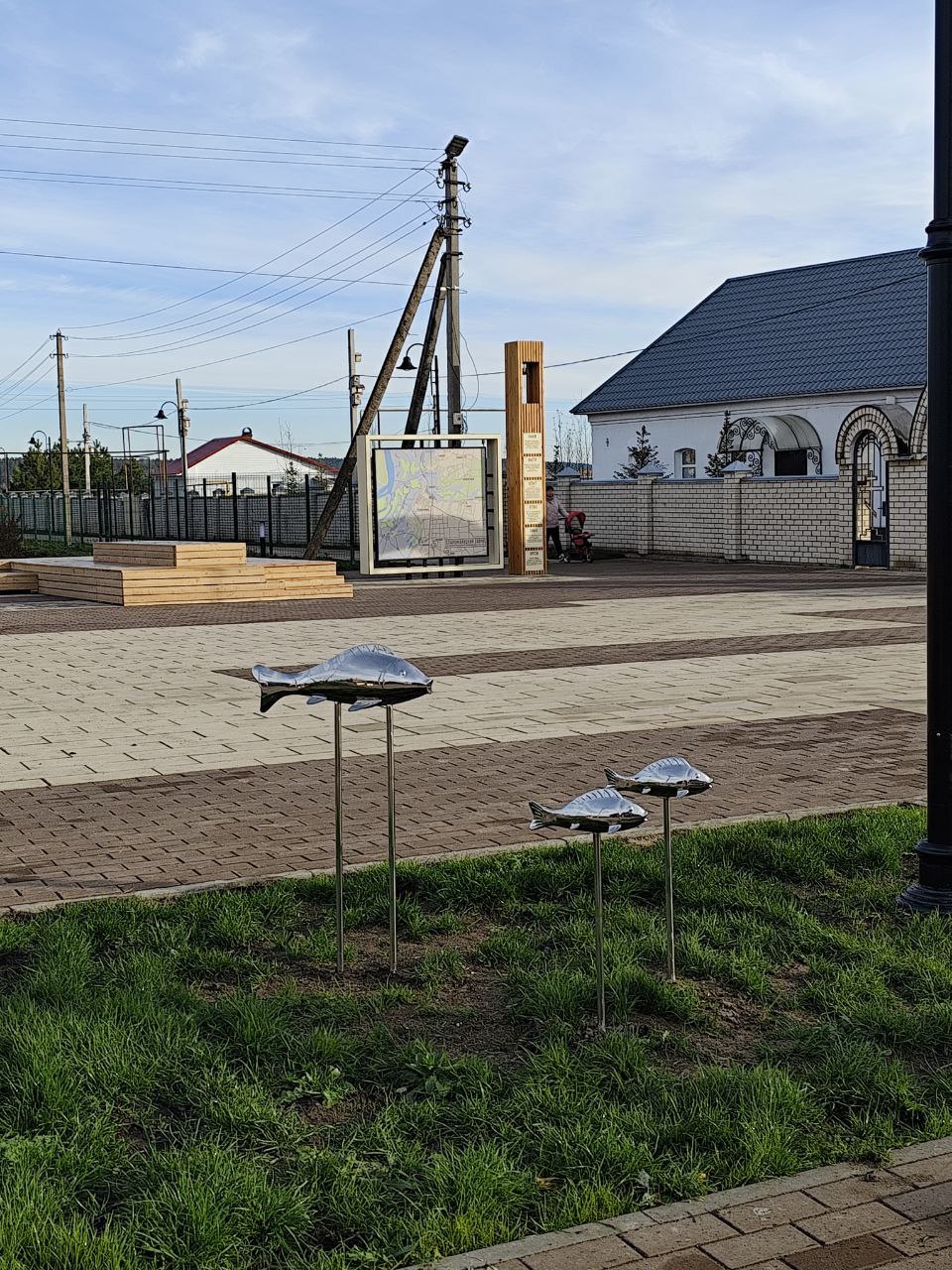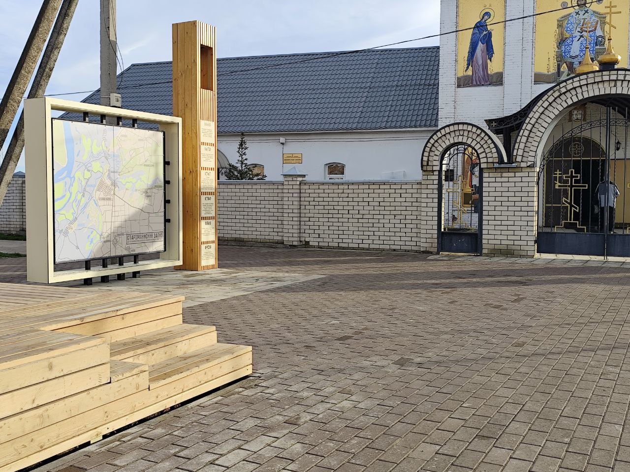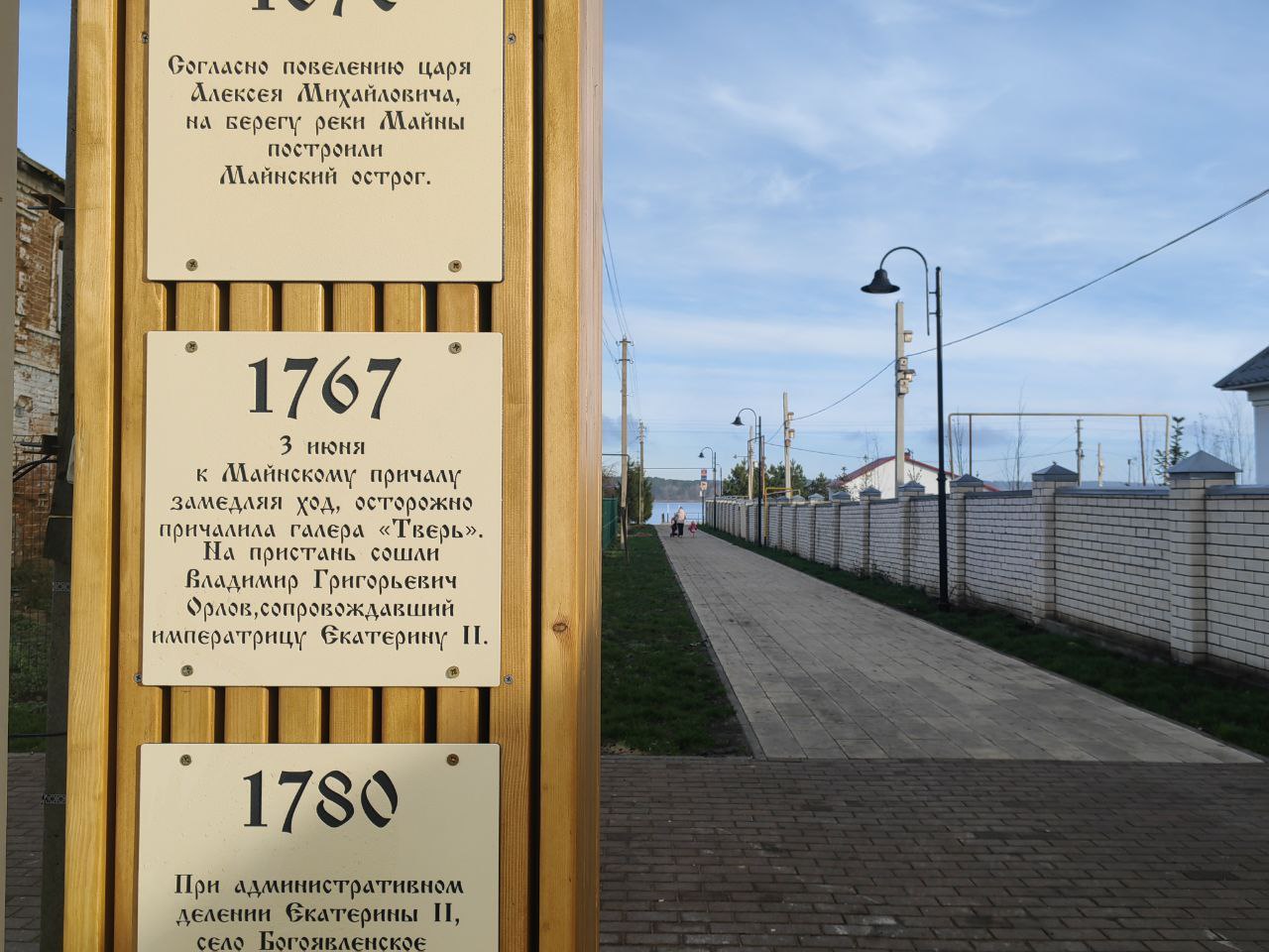 Комплекс включает в себя две ключевые детали. Первая — это карта, которая наглядно показывает, какие именно населенные пункты и территории были затоплены при создании залива. Вторая — памятный столб с колоколом, на котором отмечены основные исторические вехи поселка Старая Майна.