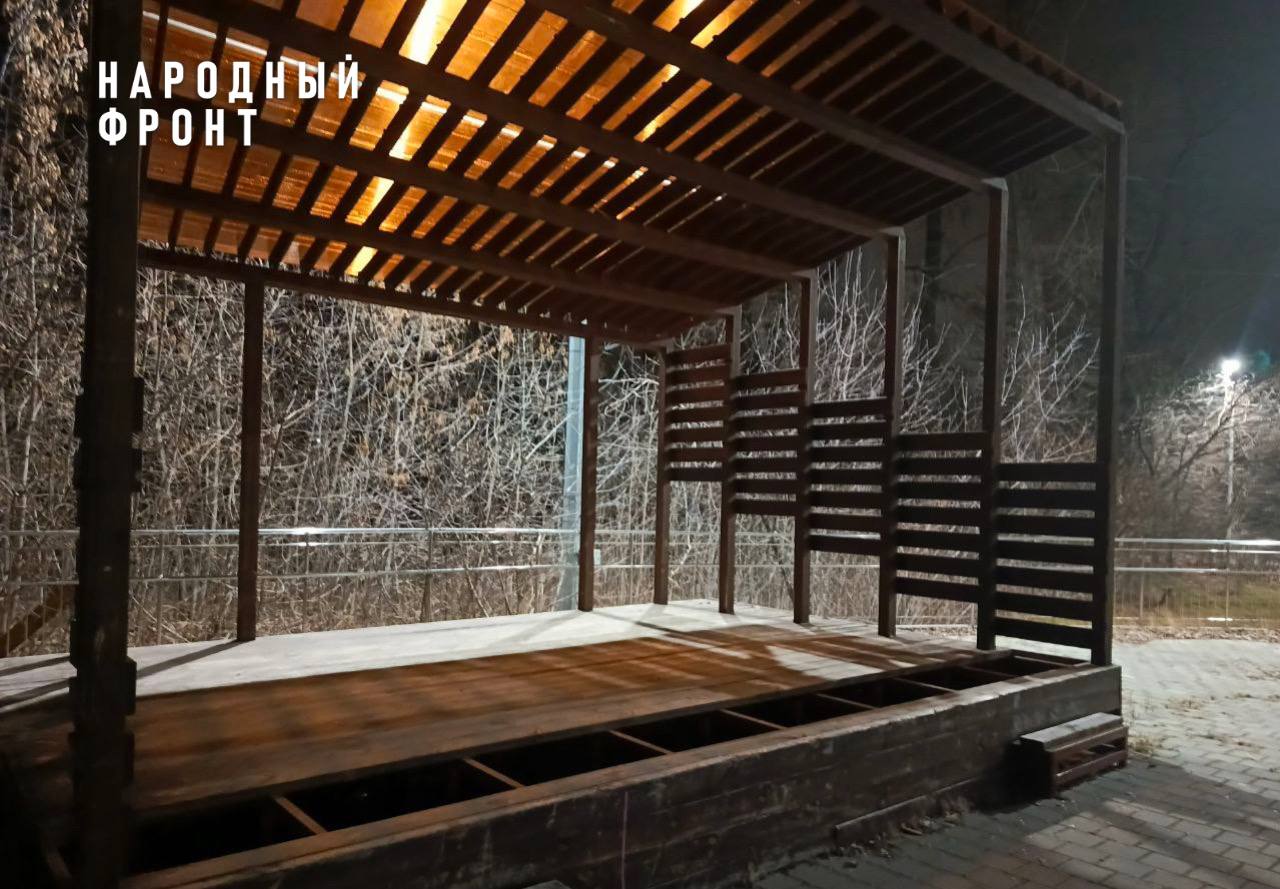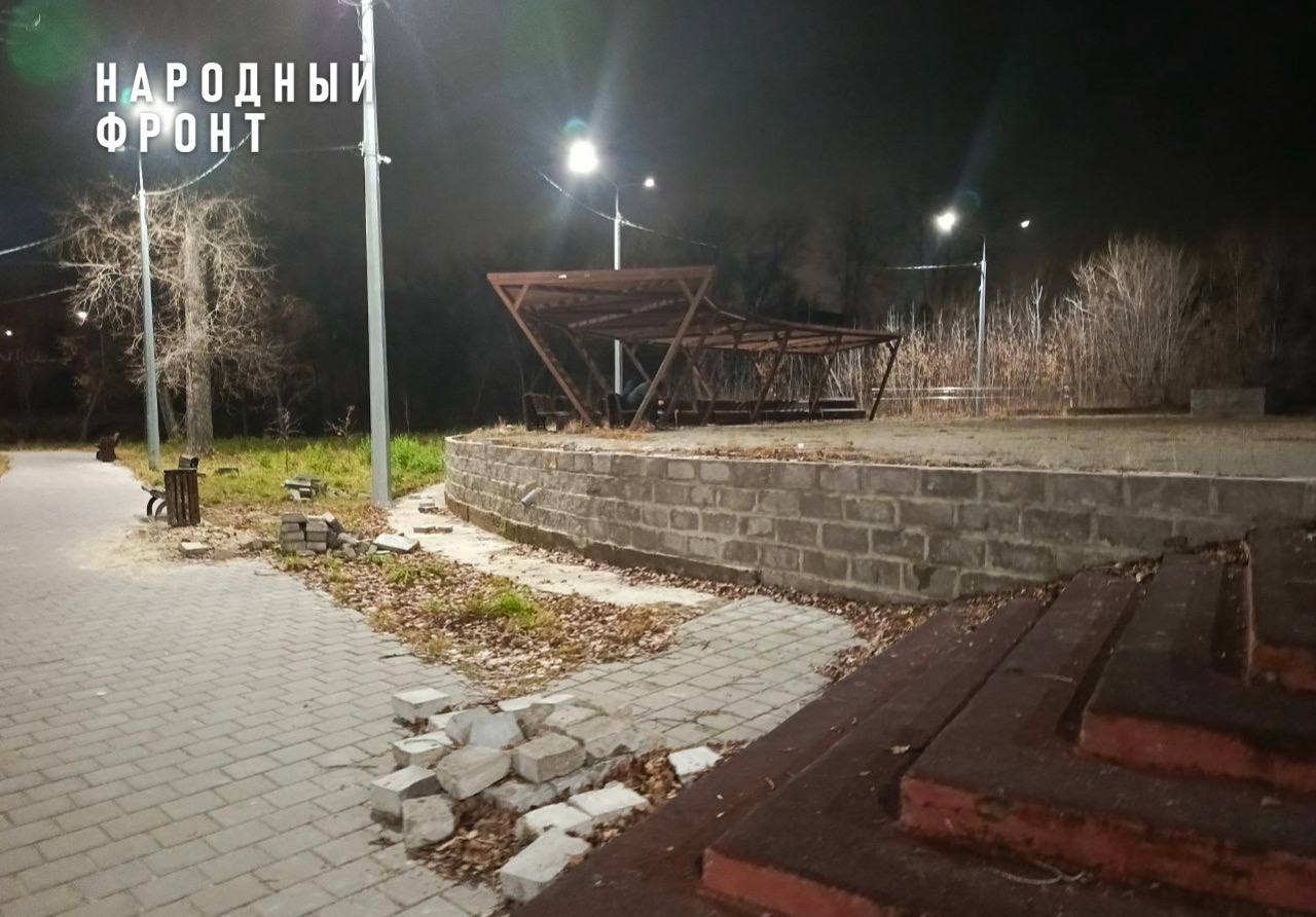 Согласно данным активистов, детская площадка превратилась в зону риска: сломаны качели, разрушено защитное покрытие, а игровые домики завалены мусором. На территории сквера повсеместно наблюдаются разрушенные скамейки и урны, осыпающаяся кирпичная кладка и свалки строительного хлама. Зона за концертной площадкой фактически превращена в несанкционированную свалку.