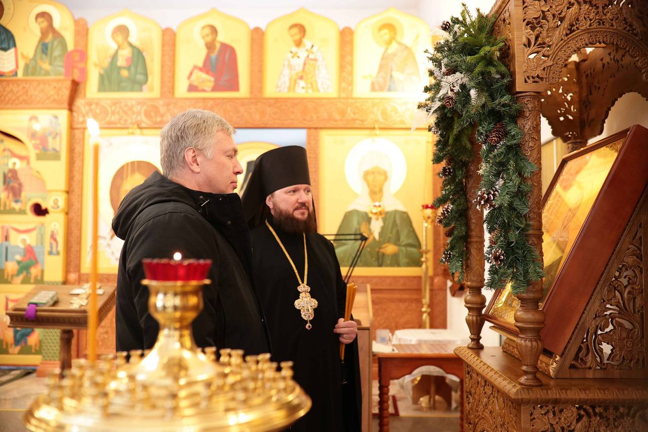 В завершение рабочего дня, в Крещенский сочельник, Алексей Русских посетил новый храм в посёлке Красный Гуляй, построенный по инициативе местных жителей и освящённый в 2022 году.