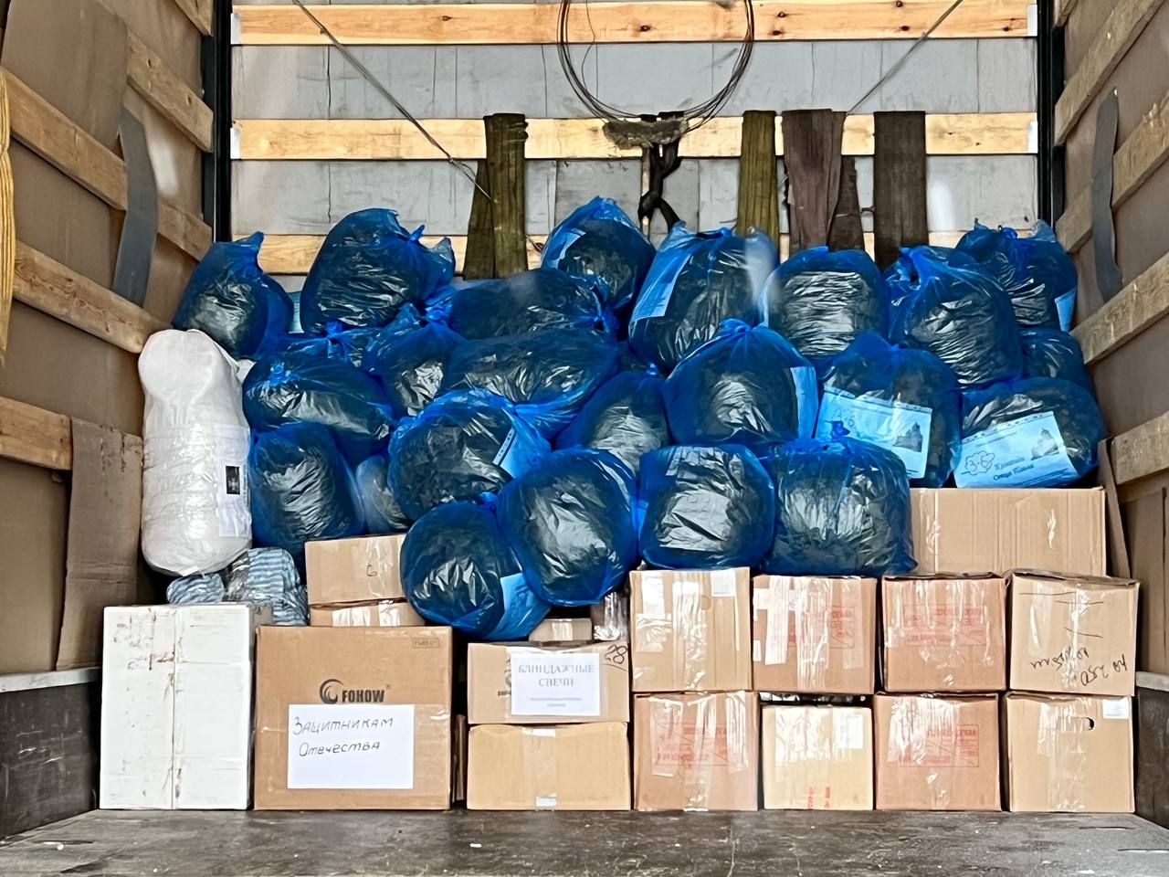 Собранная помощь включает как предметы первой необходимости, так и специализированное снаряжение. В состав груза вошли 40 маскировочных сетей, 6 коробок со средствами личной гигиены, 8 коробок с продуктами длительного хранения, мука, сахар, а также более 10 коробок так называемых «окопных свечей» — компактных и безопасных источников тепла.