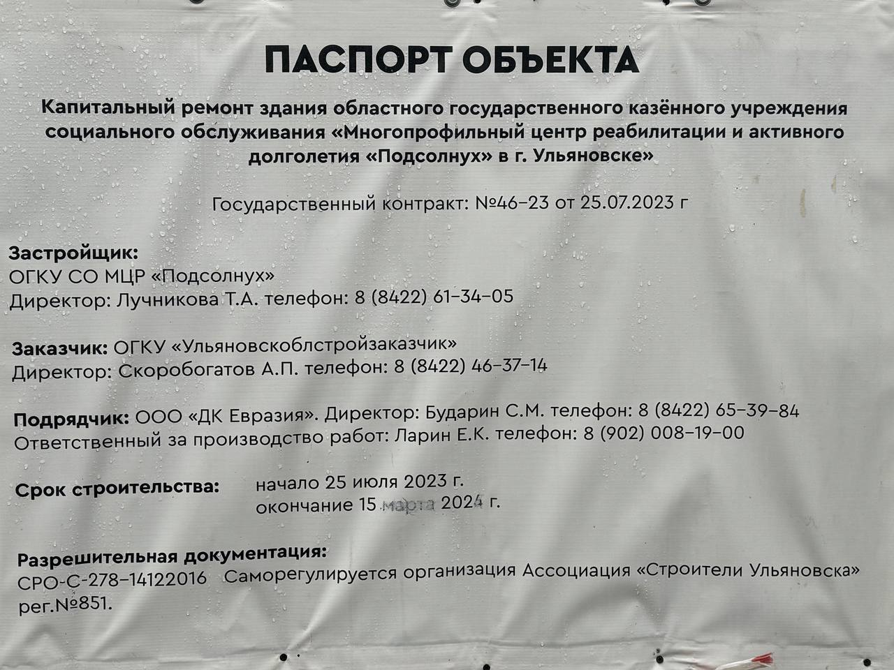 Депутат Законодательного Собрания Ульяновской области Василий Гвоздев сообщил о срыве сроков капитального ремонта нового корпуса Реабилитационного центра «Подсолнух». Вместе с председателем социального комитета регионального парламента Сергеем Шерстневым он провел выездную проверку на объекте, расположенном на улице Ефремова.