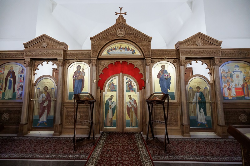 Главным событием богослужения стало освящение нового иконостаса. Как рассказал настоятель храма иерей Николай Генсицкий, необходимость в нем была давно — после строительства храма здесь стояла лишь временная перегородка. Иконостас изготовила мастерская Романа Яковлева. Работа заняла полтора года. Его выполнили в византийском стиле: невысокий, с характерными орнаментами.