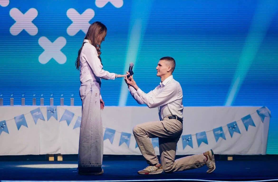 Студент энергофакультета УлГТУ Иван Поляков публично сделал предложение своей девушке, Валерии Пановой, студентке инженерно-экономического факультета того же вуза. Несмотря на волнение перед большой аудиторией, ответ был положительным.