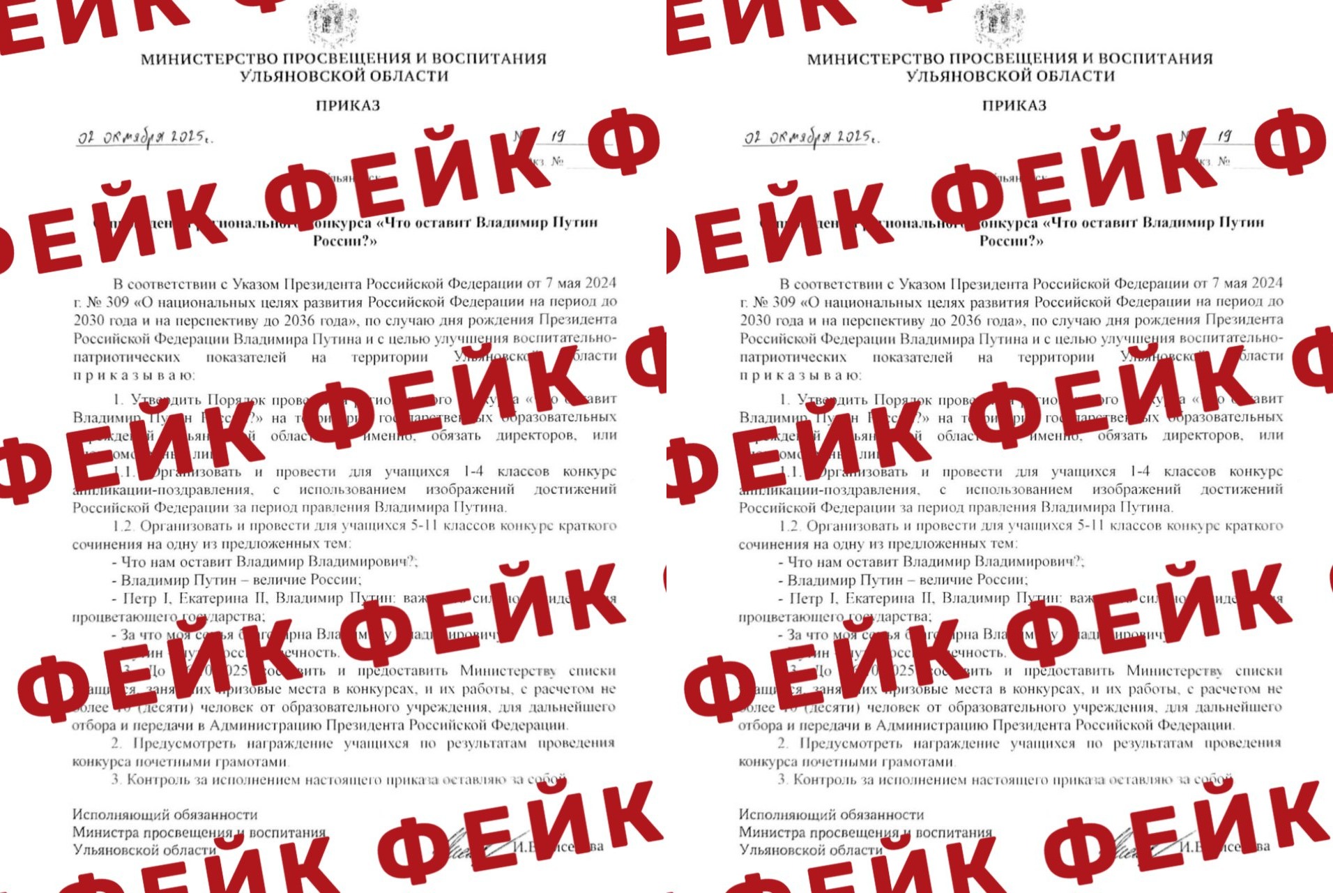 Кибермошенники и создатели фальшивых новостей выбрали новую мишень для своей деятельности — сферу образования и предстоящий день рождения Владимира Путина. Центр управления регионом Ульяновской области оперативно выявил и публично опроверг очередную попытку дезинформации. На этот раз в социальных сетях и мессенджерах неизвестные распространяли сфабрикованный приказ, который они приписывали Министерству просвещения и воспитания Ульяновской области.
