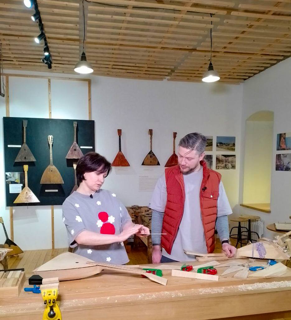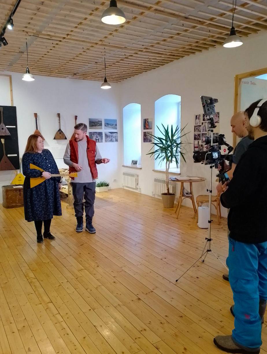 Затем съемочная группа посетила Музей балалайки, где познакомилась с местными промыслами, историей инструмента и традициями крестьянской игры в симбирской губернии. Участники проекта также смогли попробовать сыграть на ульяновских балалайках. Этот музей символизирует связь поколений, сохранение ремесла и культурную самобытность региона.