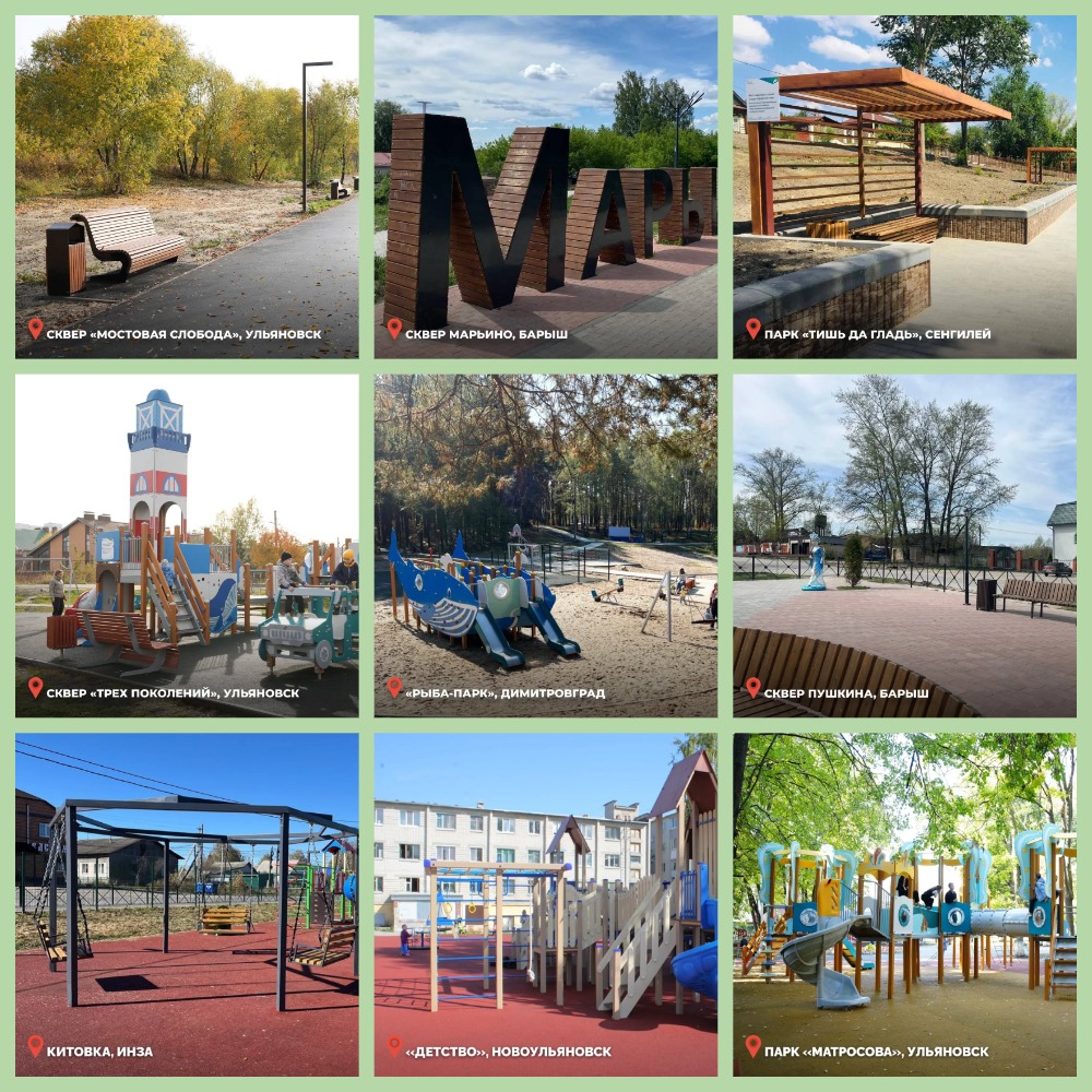 В Ульяновске на выбор три варианта: благоустройство пляжа «Центральный», сквера «Династия» или территории у Ленинского мемориала. В Барыше жители решают, обновить ли родник «Вершина» или сквер «Энтузиастов». В Инзе выбирают дизайн для детского сквера «Рябинка» на улице Труда. В Вешкайме предлагают проголосовать за одну из трёх зон: на улице Комсомольской, площади Ленина или рядом с Центром допобразования. В Новоспасском можно поддержать проект площади «В одном строю» в память о героях СВО и локальных войн, в Николаевке — Аллею Дружбы. В Большом Нагаткино решают судьбу парка имени Горького, в Мулловке — местного парка культуры, в Старой Кулатке — «Молодёжного» парка. В Димитровграде список богаче: «Лесная горка», сквер на Алтайской, «Зайцев посёлок», «Марков сад» и аллея между второй и девятой школами.