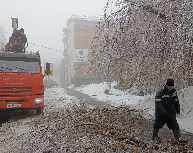 Специалисты МБУ «Городской центр по благоустройству и озеленению» и спасатели МБУ «Управление гражданской защиты» приведены в готовность для оперативного реагирования на возможные падения обледеневших деревьев и веток.