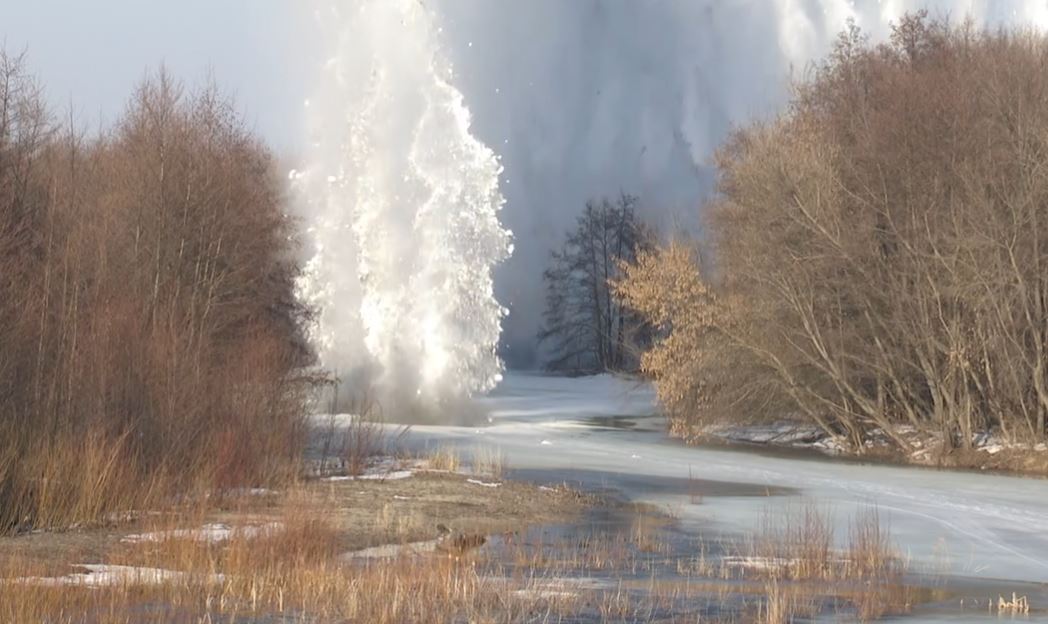 В селе Репьевка за дело взялись специалисты-взрывники инженерно-саперного подразделения Центрального военного округа вместе с сотрудниками МЧС и областными спасателями. Они разрушили ледовый покров, который угрожал местному мосту.