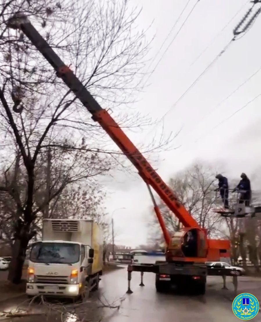 На место происшествия оперативно прибыла бригада МБУ «Управление гражданской защиты г. Ульяновска». С помощью автокрана от коммунальных служб спасатели подняли и убрали дерево с повреждённого автомобиля. После этого они раскряжевали ствол и очистили проезжую часть.