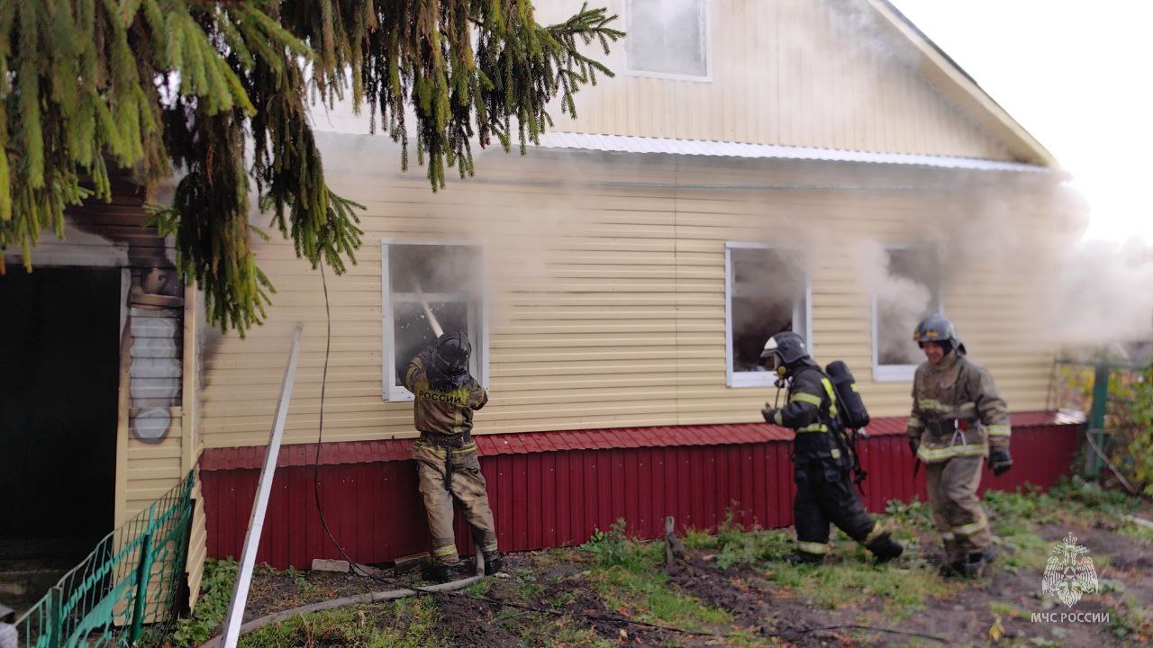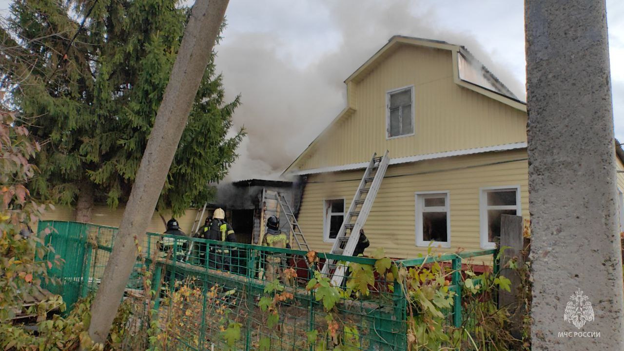 UPD. В 11:17 объявлена ликвидация открытого горения. Огнем повреждены два дома на общей площади 65 квадратов. Причину устанавливают специалисты.