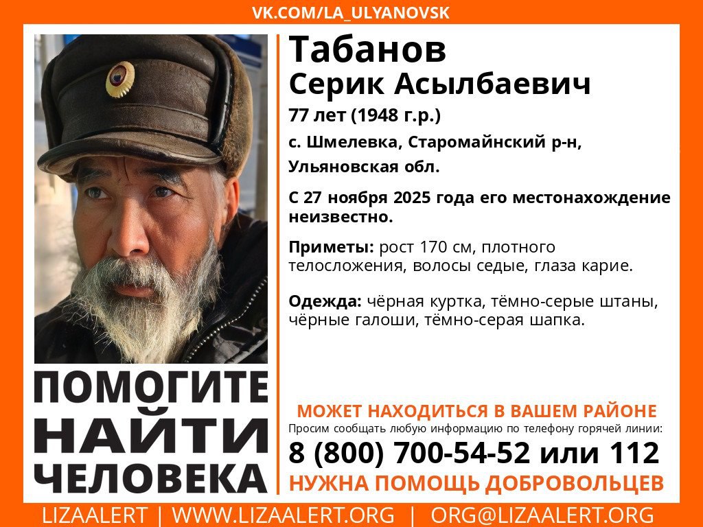 В Старомайнском районе разыскивается Табанов Серик Асылбаевич, 1948 года рождения, который пропал 27 ноября 2025 года. Пенсионер ушёл из дома в селе Шмелёвка и не вернулся. Его родные и правоохранительные органы просят помощи в установлении местонахождения мужчины.