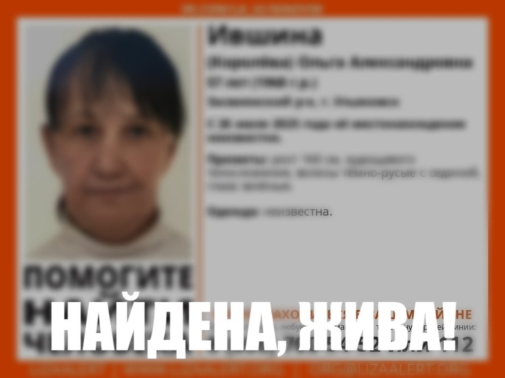 Информационный отдел поисково-спасательного отряда «ЛизаАлерт» сообщил об успешном завершении поисков Ольги Александровны Ившиной (Королёвой), 1968 года рождения, которая пропала 26 июля 2025 года.