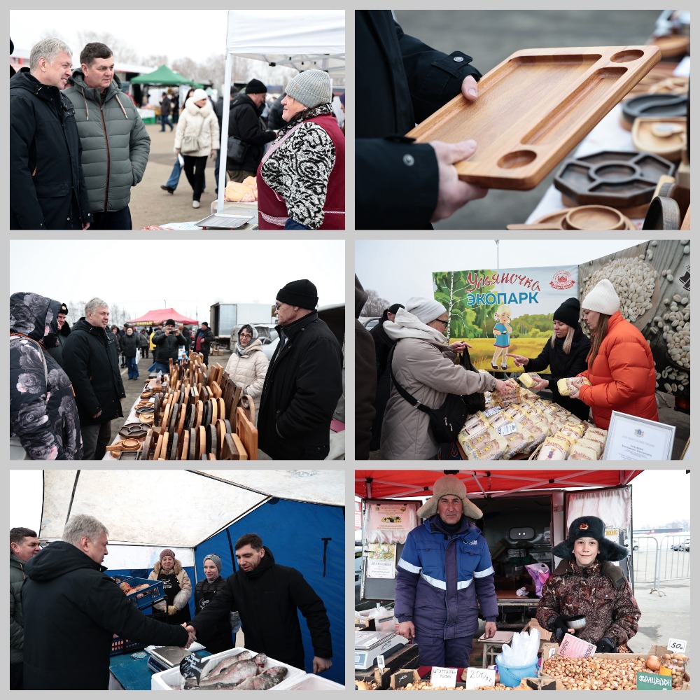 Отдельное внимание губернатор уделил продукции, произведенной получателями социальных контрактов. На прилавках были представлены верхняя мужская одежда, деревянная посуда, сувениры, пуховые и шерстяные изделия. Среди продавцов — Вячеслав Маркевич из Димитровграда, заключивший социальный контракт в 2023 году. Вместе с супругой и дочерью он изготавливает из дерева тарелки, разделочные доски и другие изделия. Алексей Русских высоко оценил качество продукции и приобрел деревянную доску.