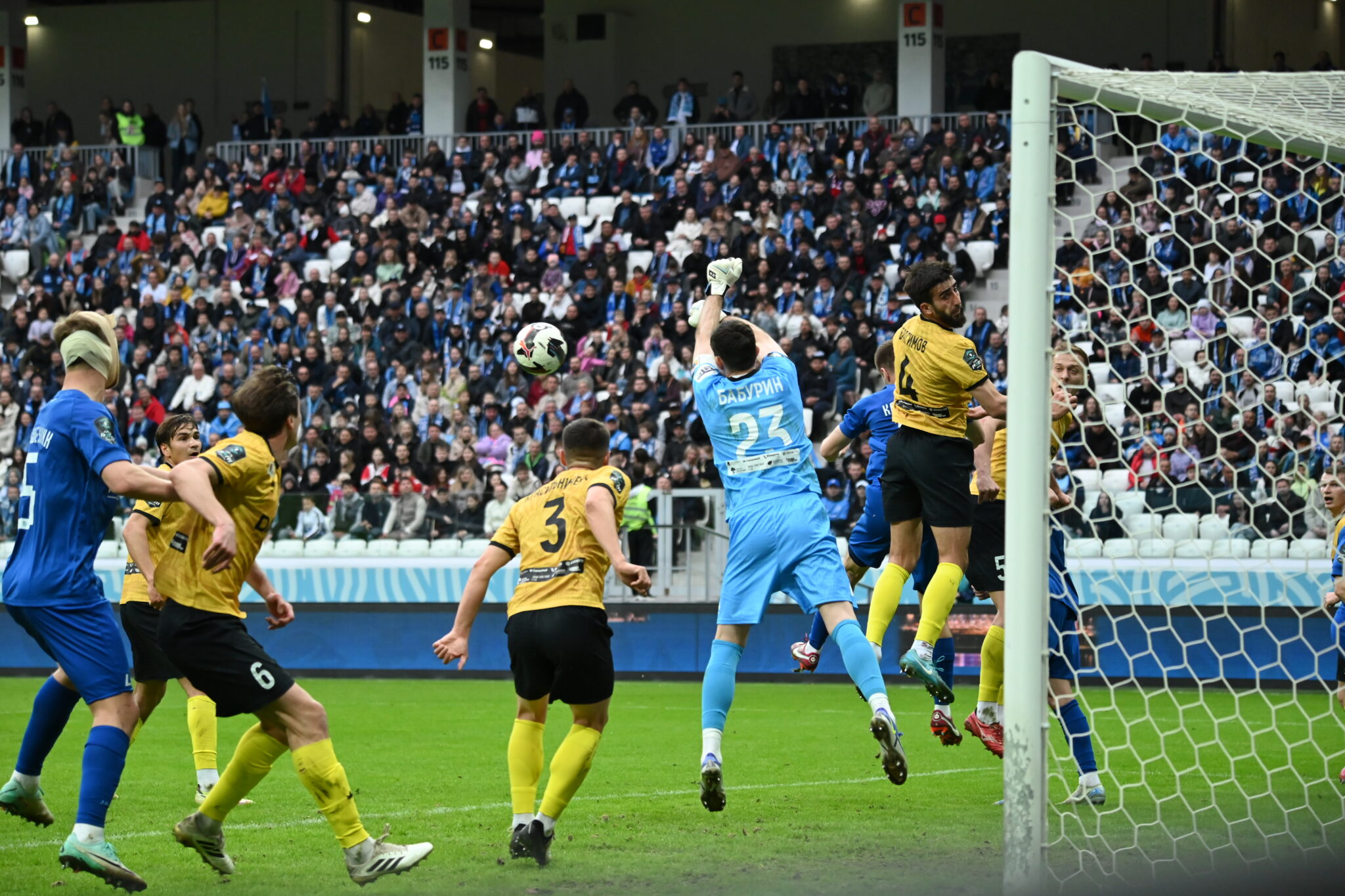 Самый острый момент у ворот «Ротора» возник уже на 3-й минуте: Саплинов с близкого расстояния послал мяч в сантиметрах от штанги. Волгоградцы ответили лишь спустя 20 минут — опасный выстрел Азнаурова парировал вратарь гостей Бабурин. Кстати, именно Егор Бабурин из-за травмы основного голкипера Айдара Хабибуллина получил капитанскую повязку и вывел команду на поле в качестве самого опытного игрока.