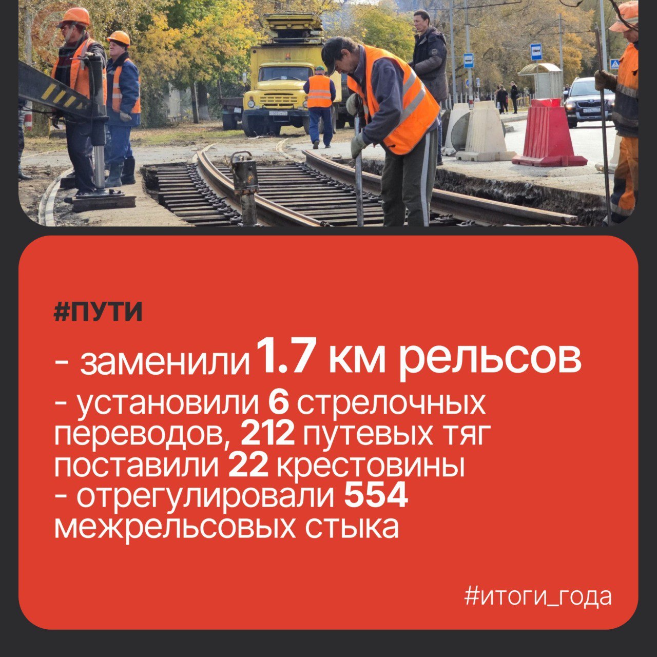 Оператор также отмечает значительные результаты в повседневной работе: за отчётный период услугами перевозки воспользовались почти 20 млн пассажиров, а общий пробег подвижного состава превысил 5 млн километров. В рамках обновления инфраструктуры было заменено 1,7 км трамвайных путей и 700 метров троллейбусной контактной сети, проведено около 4 тысяч технических обслуживаний транспортных средств. На шести остановочных пунктах установлены современные павильоны.