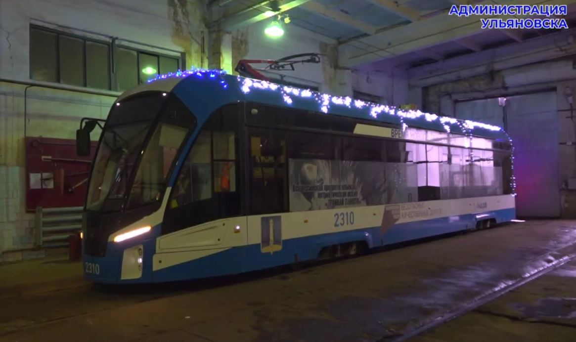 В Ульяновске стартовала традиционная предновогодняя акция — по городу начали курсировать трамваи, украшенные гирляндами.