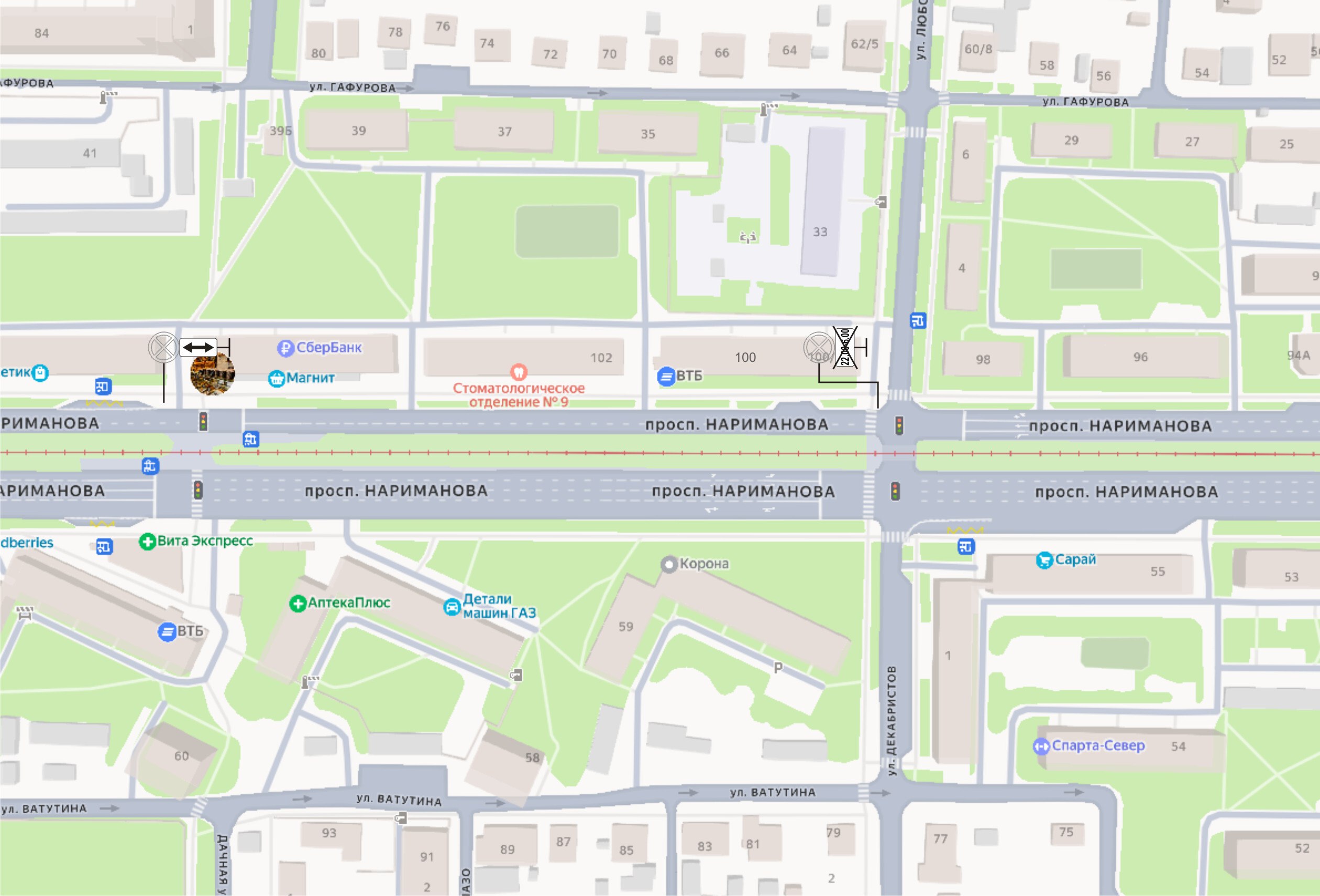 Участок: проспект Нариманова, четная сторона, от улицы Любови Шевцовой до улицы Юности.