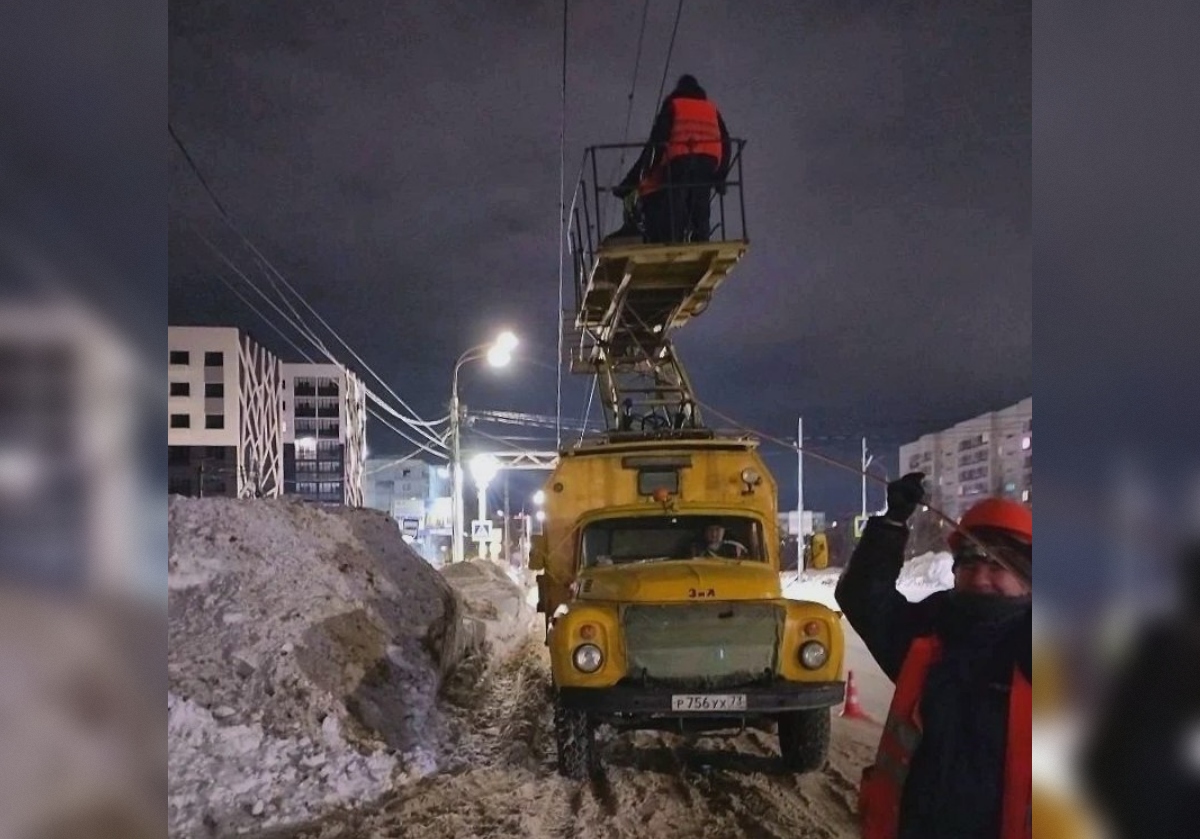 Работы по обновлению контактной линии в Ульяновске не прекращаются даже ночью. Такой график позволяет избегать транспортных заторов и не мешать движению в часы пик.