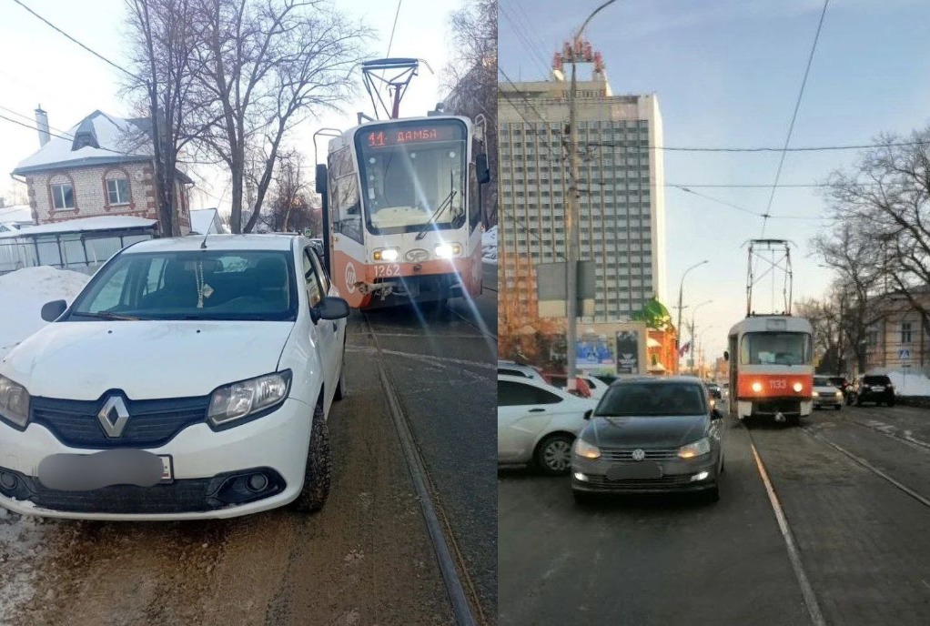 На улице Спасской произошло столкновение легковых автомобилей, а на улице Верхнеполевой ситуацию усугубил так называемый «мастер парковки» — водитель, который припарковался с нарушением правил и заблокировал трамвайные пути.
