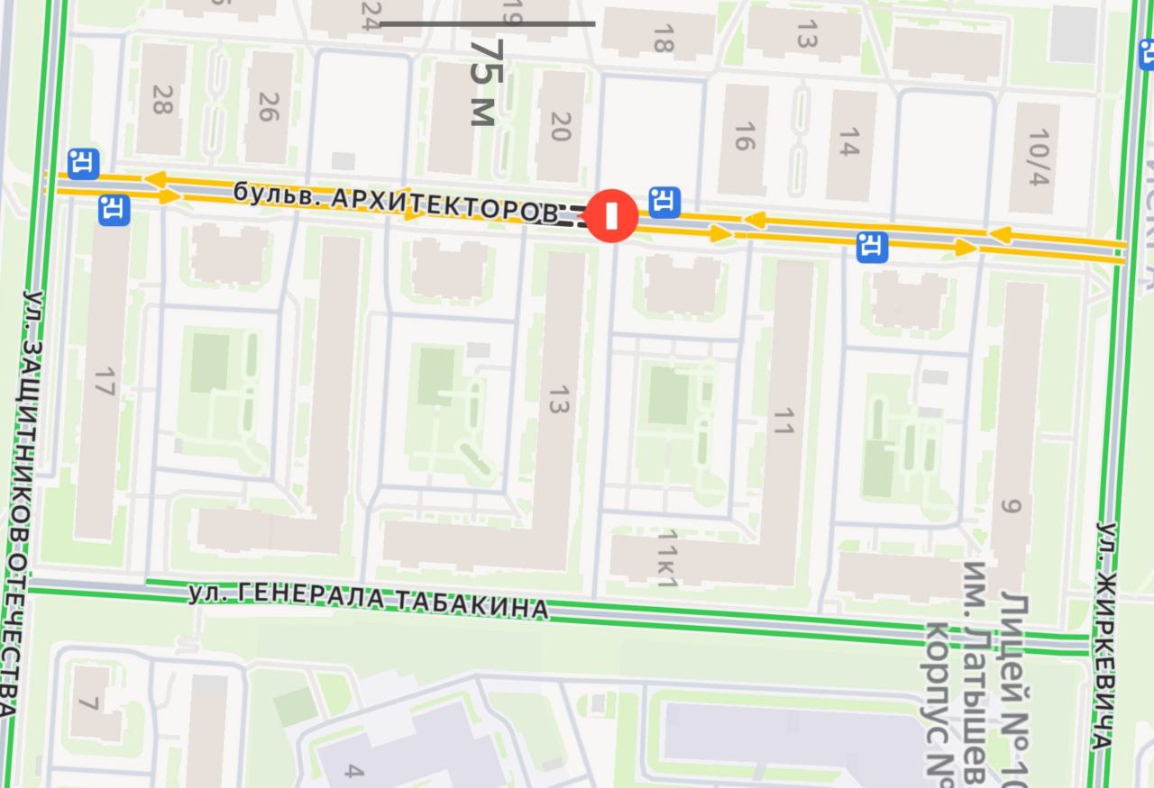 До завершения ремонта маршрутки следуют в объезд по следующему пути: по улице Защитников Отечества, затем по улице Генерала Табакина и улице Жиркевича, после чего возвращаются на свой обычный маршрут.