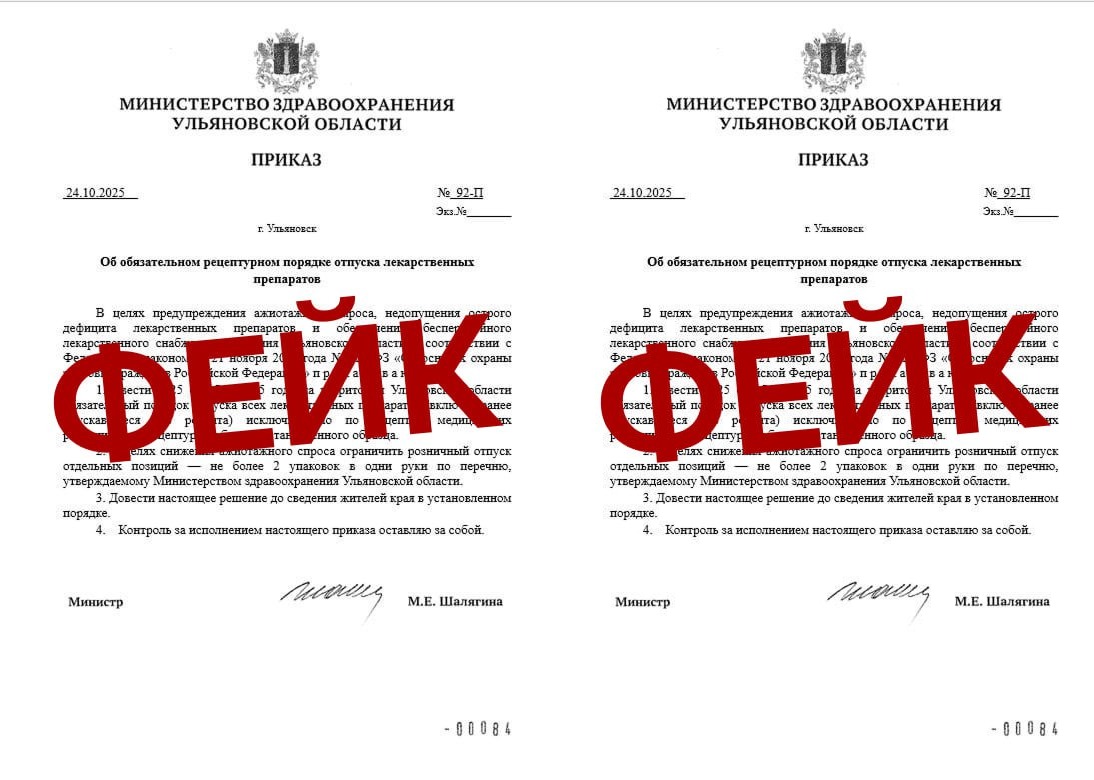 Специалисты отмечают, что фальшивку выдают характерные признаки: использование нетипичных для официальных документов формулировок и наличие фактических ошибок. В министерстве подчеркивают, что в регионе отсутствует дефицит лекарственных средств, а правила отпуска препаратов остаются неизменными.