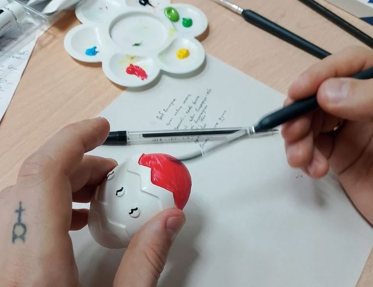 В Ульяновской областной клинической наркологической больнице медицинский психолог Елена Макарова применила нестандартный подход к реабилитации пациентов. Вместо традиционных тестов и дневников она предложила им занятие арт-терапией, где главным инструментом стали гипсовые яйца, акварель и мелки.
