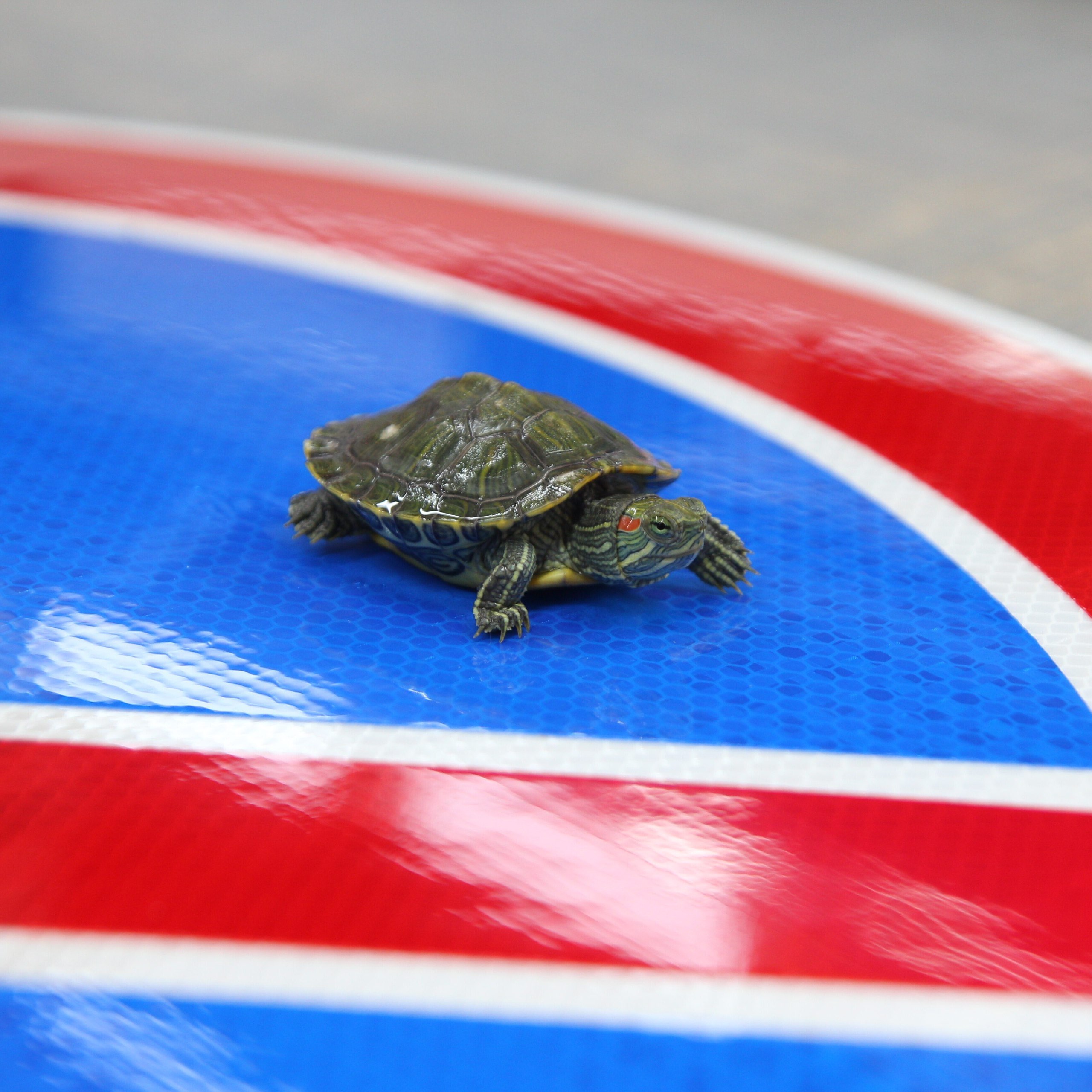 В цехе по изготовлению дорожных знаков ульяновского МБУ «Правый берег» появился необычный сотрудник — маленький черепашонок. Как сообщают в учреждении, он стал всеобщим любимцем и настоящей звездой коллектива.