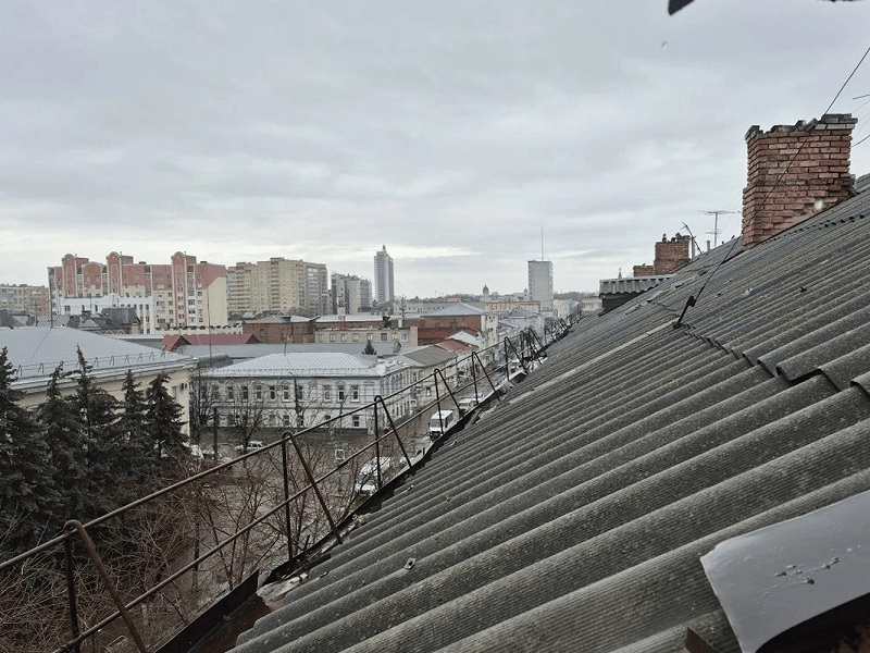 В середине апреля подрядчики приступили к работам. Строители разбирают существующую кровлю и несущие конструкции, после чего смонтируют новый деревянный каркас с обрешёткой и ветровлагозащитной плёнкой, поверх которой уложат кровлю из металлического профлиста. Также обновят дымовентиляционные каналы, утеплят чердачные перекрытия, установят ограждения, снегозадержатели и водосточную систему.
