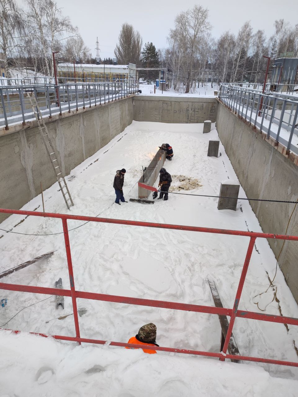 В настоящее время на сооружениях выполнен пробный пуск нового, более энергоэффективного воздуходувного агрегата. Продолжаются монтажные работы: устанавливают воздуховоды к аэротенкам, монтируют лотки, переходные мостики и другие элементы. Ранее были успешно завершены ключевые этапы по бетонированию резервуаров и гидроизоляции.